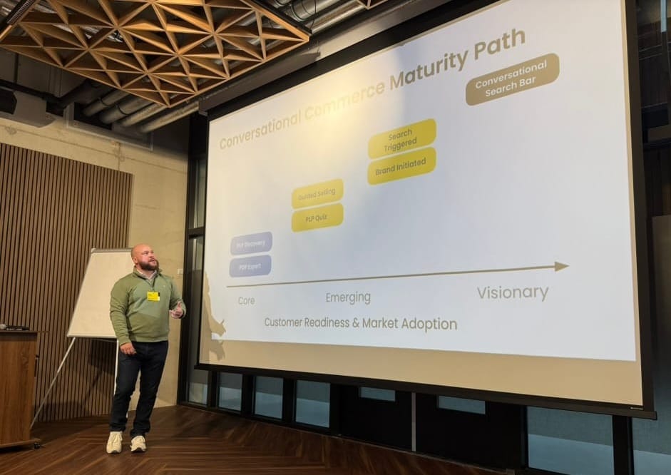 I spent yesterday morning at the Bloomreach Partner Enablement Day event in Amsterdam, where Adam Hackett spoke about conversational commerce and the company’s new Clarity module. It wasn’t a pitch, more a quiet look at how online shopping is beginning to resemble an actual exchange, less filtering, more asking. The kind of conversation that once happened with a store assistant, now expressed through an interface.