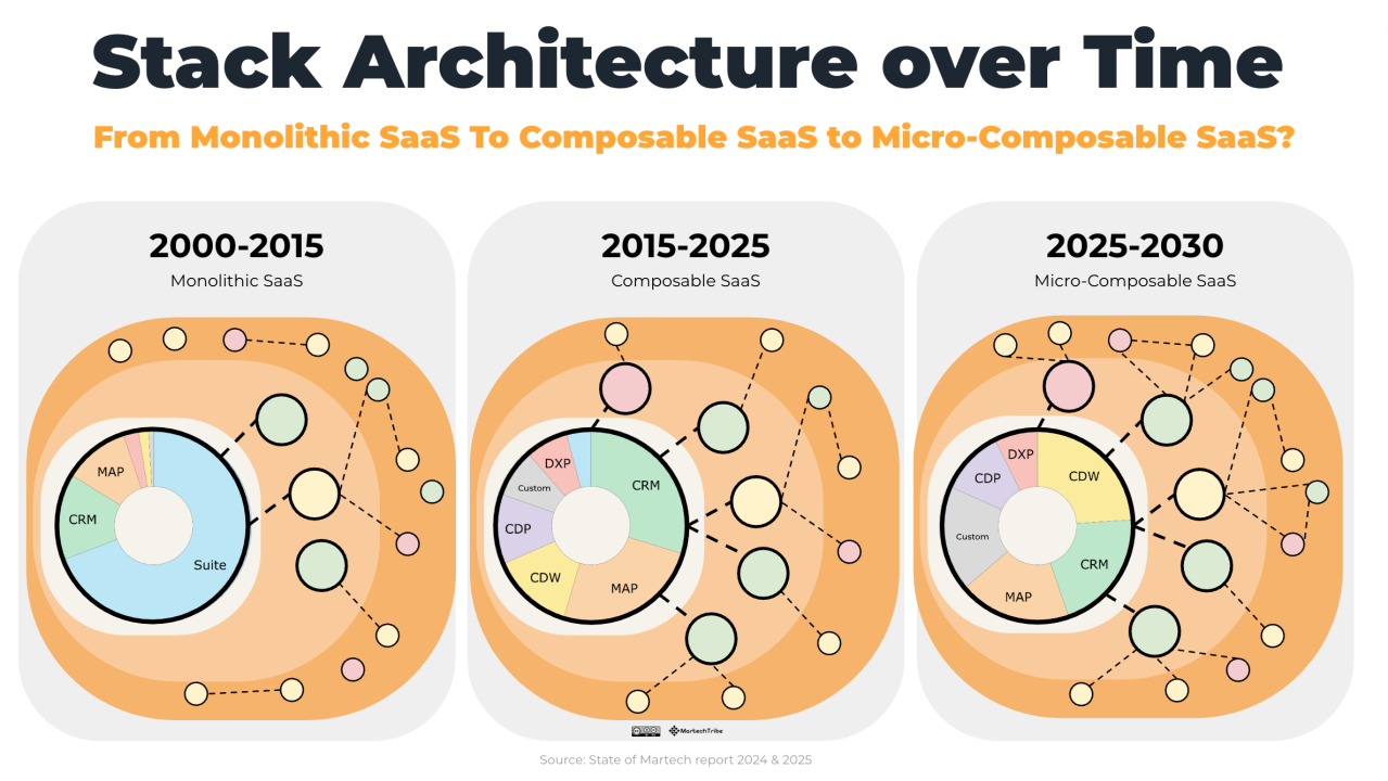 The first response is architectural. Composable approaches aim to make Martech stacks more modular, allowing components to be connected, replaced, or extended more easily. Instead of forcing every function into a single platform, systems can communicate through APIs and shared data layers.