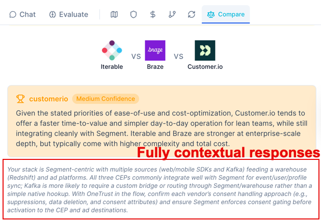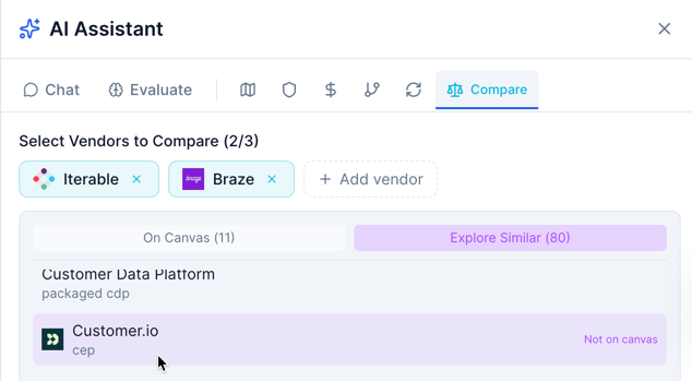 Additionally, I have added a feature that lets you search for alternative solutions in your martech stack and compare them with those from other vendors.