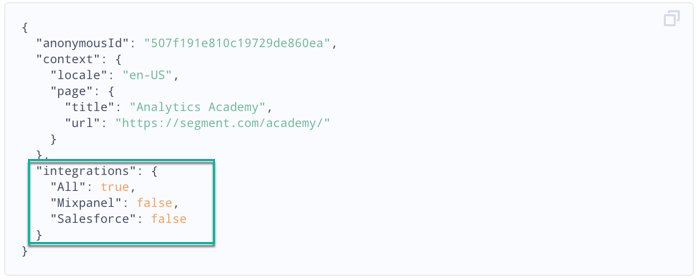 - all_default: [Free/Team tier] Since we need to do an API call to retrieve all the destinations in the Segment account, it is wise to have a value to fall back on, just in case of an error. The failsafe, in this case, is the All key in the integrations object with the default value of false. This will prevent data from reaching any destination in case of an error. Change this value to true to reverse the effect.