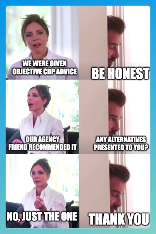Put it all together, the agencies with hidden incentives, vendors playing language games, analysts trapped in their bubbles, executives bending the rules, and you wonder why so many CDP selections go wrong.