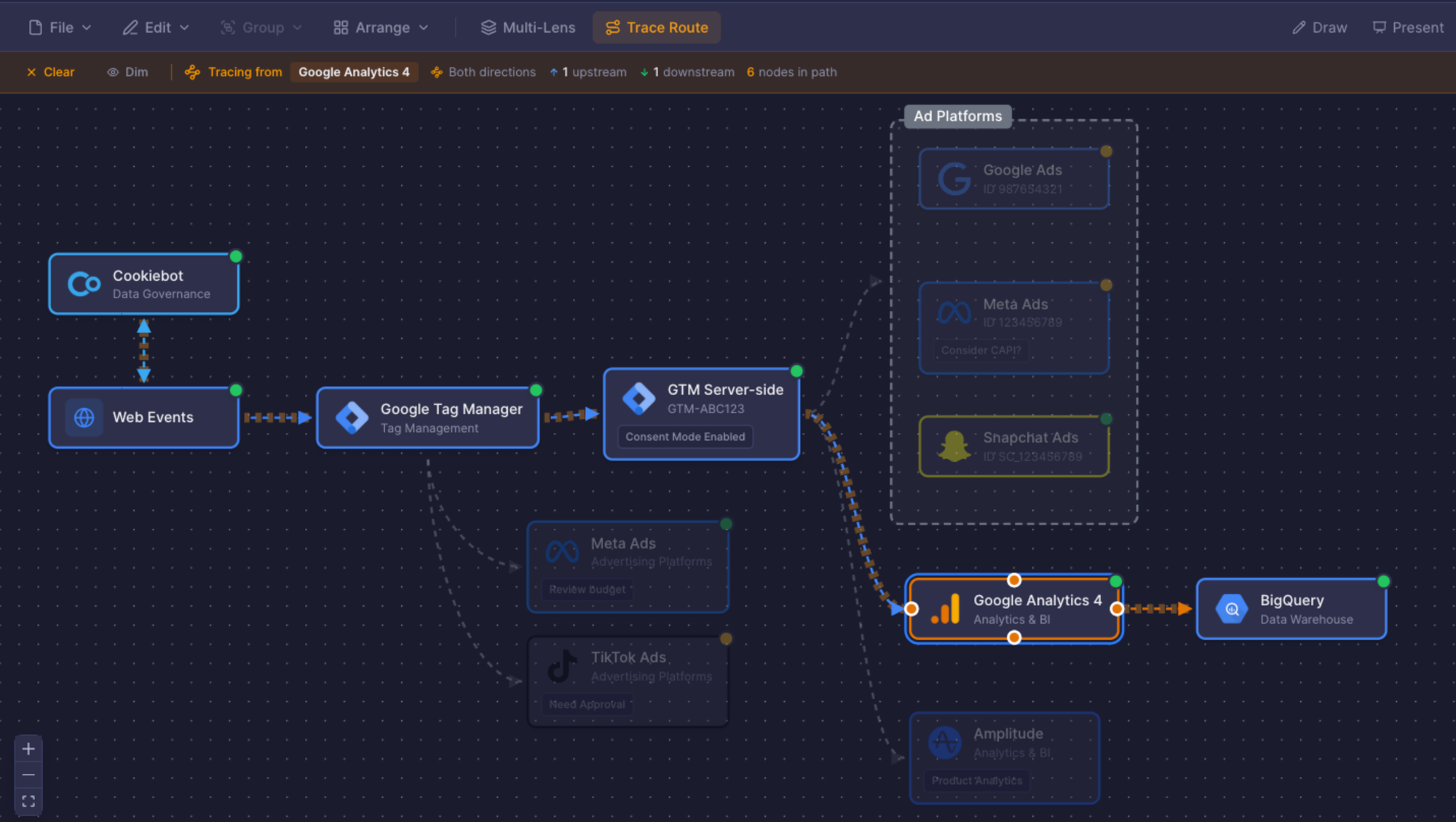 One feature that came directly out of this thinking is trace routing. It answers a deceptively simple question: where does data actually come from, and where does it go?