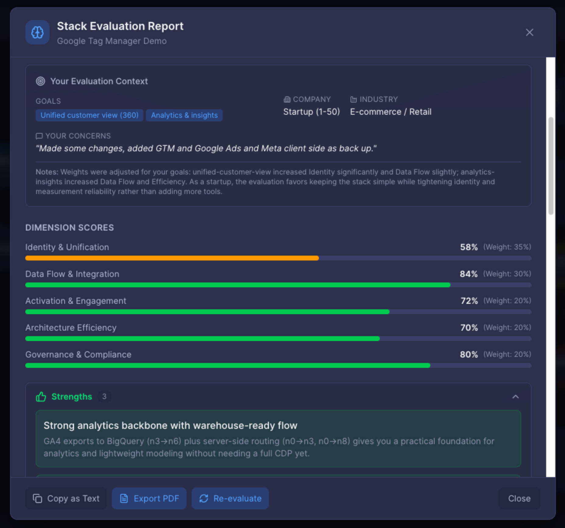 This was the moment Martech Stack Builder stopped being about visualisation and started becoming a sense-making tool.